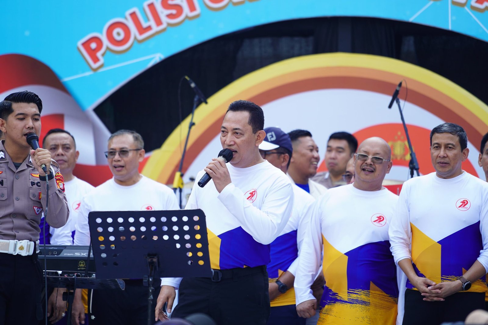 Jakarta, – Dalam rangka menyambut Hari Bhayangkara ke-79, Polri menggelar acara CFD Bhayangkara Sport Day di Bundaran HI, Jakarta. Kapolri Jenderal Listyo Sigit Prabowo turut hadir dan menyumbangkan suara dengan membawakan lagu “Rumah Kita” dari Godbless serta “It’s My Life” milik Bon Jovi.