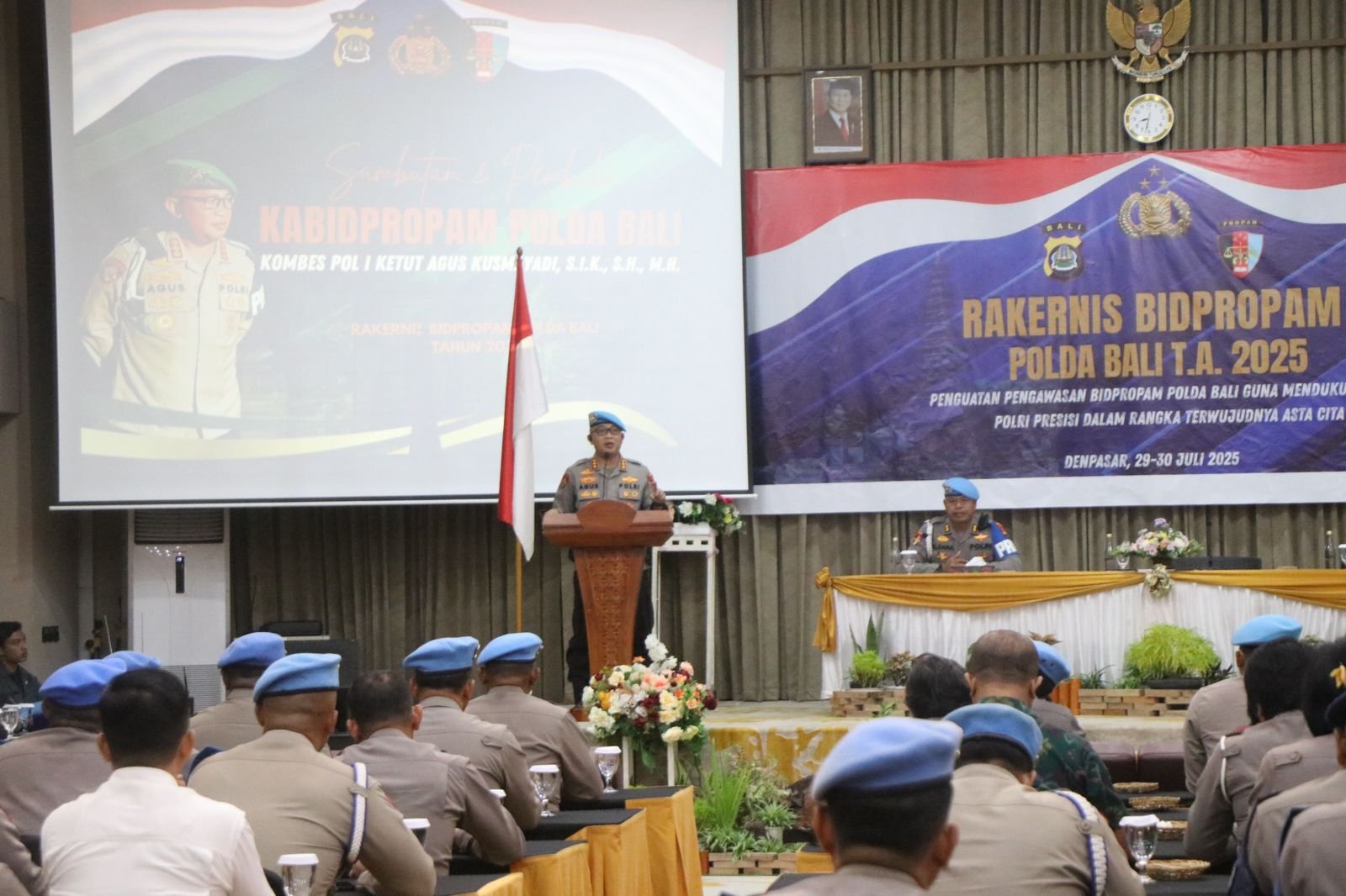 Denpasar, -29 Juli 2025– Bidang Profesi dan Pengamanan (Bid Propam) Polda Bali menyelenggarakan Rapat Kerja Teknis (Rakernis) tahun 2025 yang bertempat di Hotel The Grand Santhi, Denpasar. Acara ini mengusung tema *”Penguatan Pengawasan Bidpropam Polda Bali Guna Mendukung Peran Polri Presisi Dalam Rangka Terwujudnya Asta Cita.”*