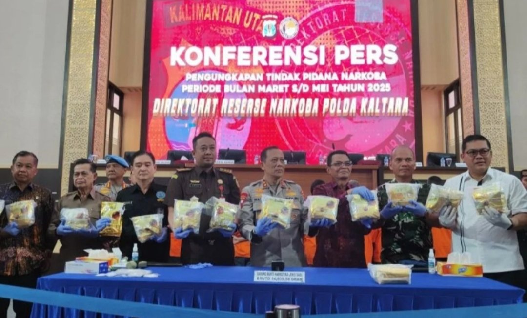 Tanjung Selor, – Polda Kaltara, berhasil mengungkap 17 kasus tindak pidana narkoba dengan total barang bukti sabu seberat 14.939,58 gram atau hampir 14,9 kilogram sejak Maret-Mei 2025.