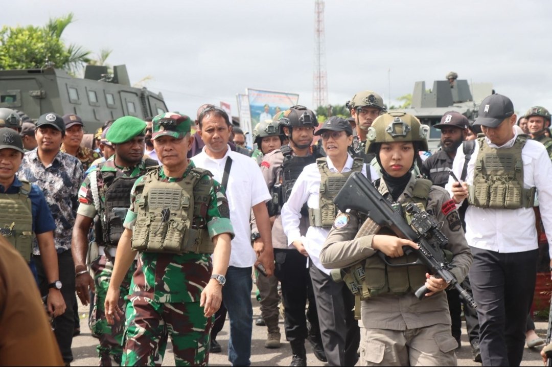 Nduga – Sebanyak sembilan personel polisi wanita (Polwan) dari Operasi Damai Cartenz-2025 dilibatkan dalam pengamanan VVIP kunjungan Menteri Pertahanan RI Letjen TNI (Purn.) Sjafrie Sjamsoeddin, M.B.A., dan Menteri Keuangan RI Sri Mulyani Indrawati, S.E., M.Sc., Ph.D. di Kenyam, Kabupaten Nduga, Provinsi Papua Pegunungan, Sabtu (7/6/2025).