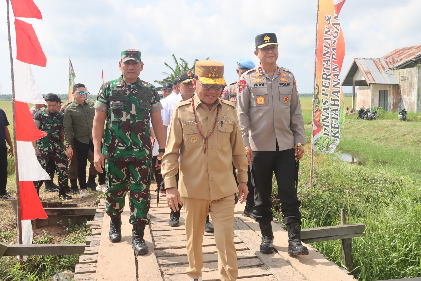 Palangka Raya – Kapolda Kalimantan Tengah Irjen Pol Iwan Kurniawan bersama Gubernur H. Agustiar Sabran dan Forkopimda Kalteng menanam padi di Desa Lempuyangan, Kecamatan Teluk Sampit, Kabupaten Kotawaringin Timur (Kotim), Rabu (23/4/2025).
