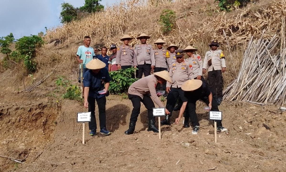 Usai mengikuti arahan pusat secara daring, Wakapolres Raja Ampat bersama tamu undangan dan personel kepolisian melakukan penanaman benih jagung pipil secara simbolis di lokasi tersebut.