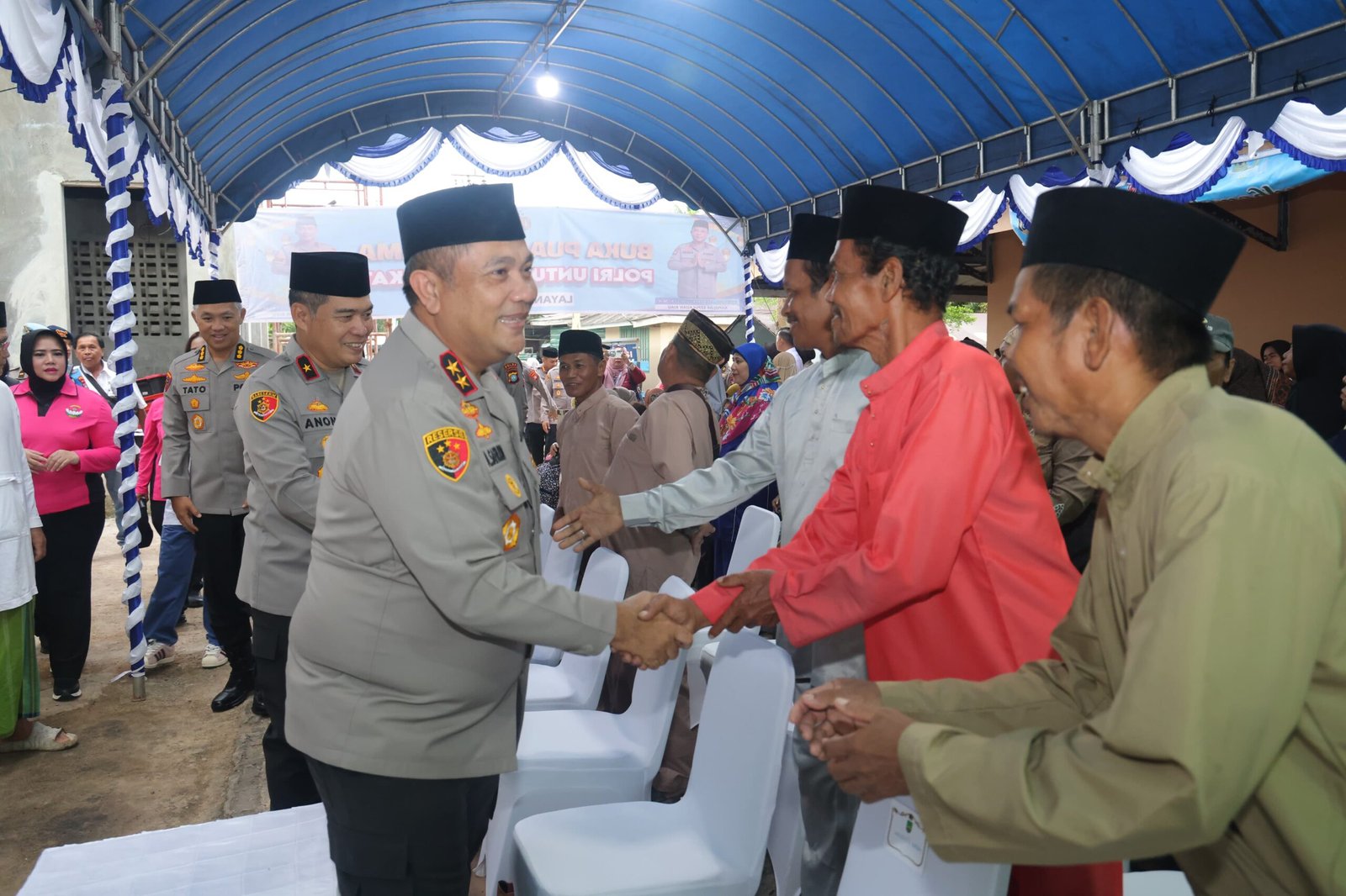 Turut hadir dalam kegiatan tersebut Wakapolda Kepri Brigjen Pol. Dr. Anom Wibowo, S.I.K., M.Si., Wali Kota Batam Amsakar Achmad, Pejabat Utama Polda Kepri, Kapolresta Barelang, Kapolsek Galang, Ketua Bhayangkari Daerah Kepri Ny. Detta Asep Safrudin beserta rombongan, serta jajaran BP Batam dan unsur pimpinan kecamatan setempat.
