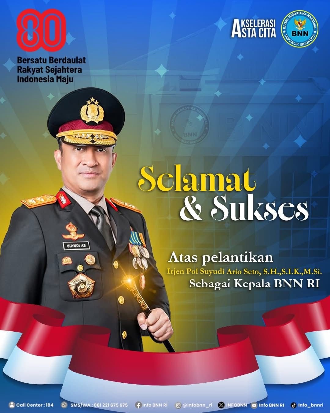 Irjen Pol. Suyudi Ario Seto menggantikan pejabat sebelumnya dengan membawa rekam jejak panjang dalam dunia kepolisian. Beliau dikenal memiliki pengalaman luas di bidang penegakan hukum, investigasi, serta pemberantasan tindak kejahatan terorganisir. Kepercayaan yang diberikan Presiden Prabowo mencerminkan besarnya harapan agar BNN di bawah kepemimpinannya mampu tampil lebih progresif, tegas, dan efektif dalam memerangi narkoba.