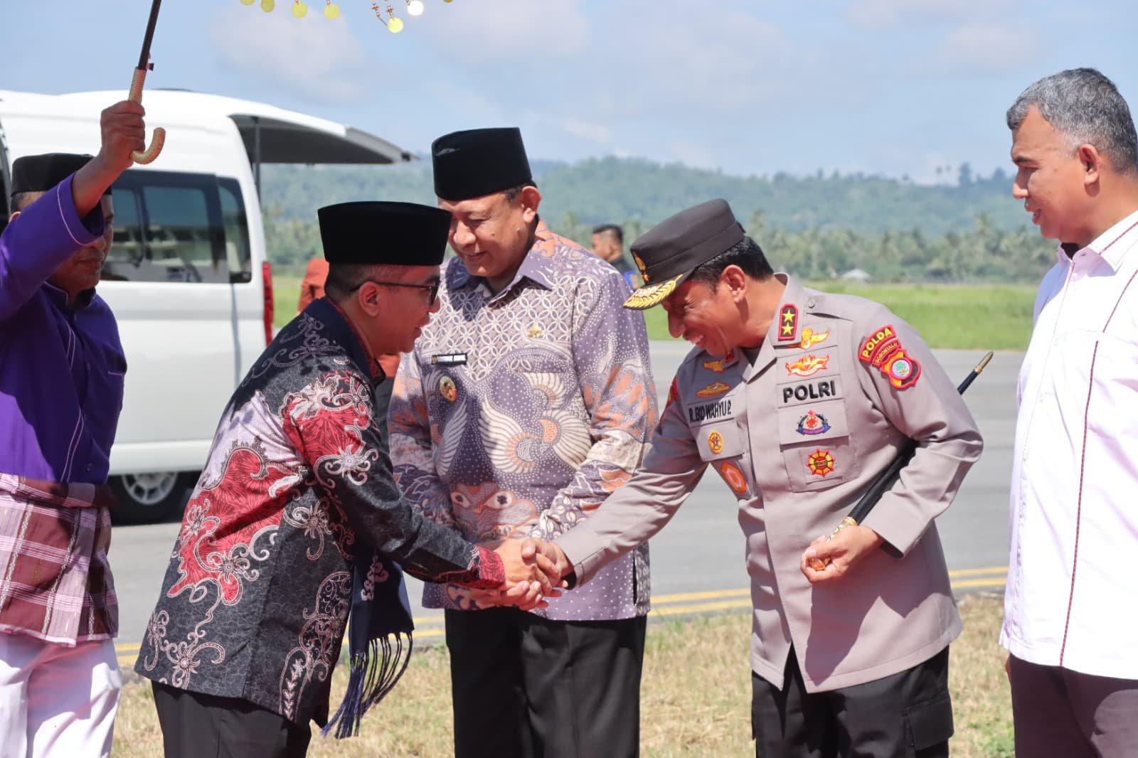 Gorontalo, – Kepala Kepolisian Daerah Gorontalo, Irjen Pol. Drs. R. Eko Wahyu Prasetyo, S.H., menghadiri kegiatan penjemputan Menteri Pendidikan Tinggi, Sains, dan Teknologi Republik Indonesia, Prof. Brian Yuliarto S.T., M.Eng., Ph.D, yang tiba di VIP Bandara Lama Djalaluddin Gorontalo, Sabtu (03/05/2025). Acara tersebut merupakan bagian dari kunjungan kerja Menteri dalam rangka memperkuat sektor pendidikan tinggi dan riset di wilayah Gorontalo.