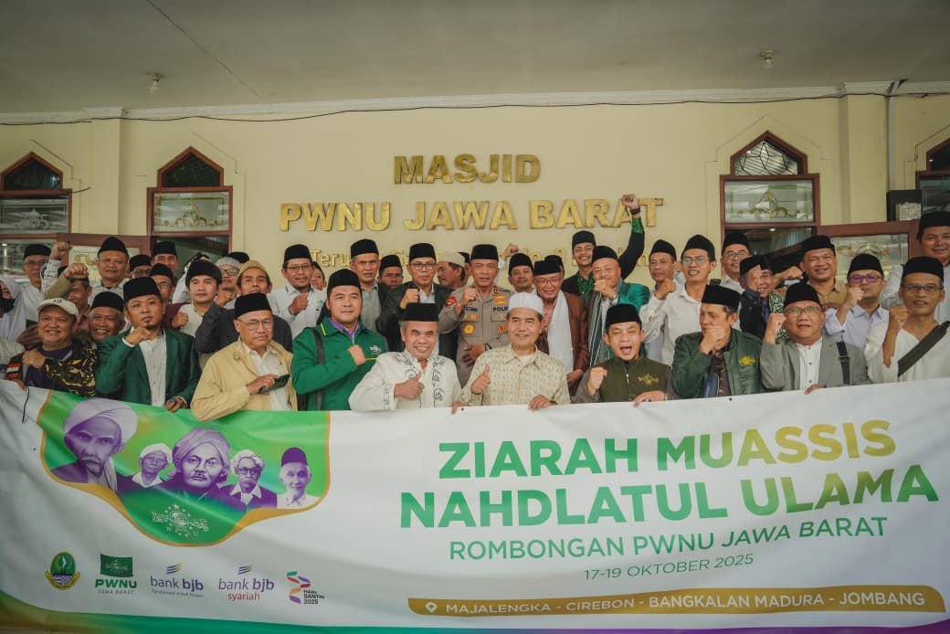 Bandung, – Kapolda Jawa Barat Irjen Pol. Rudi Setiawan, S.I.K., S.H., M.H. menghadiri sekaligus melepas rombongan Ziarah Muassis Nahdlatul Ulama (NU) dalam rangkaian kegiatan Hari Santri Nasional PWNU Jawa Barat Tahun 2025. Kegiatan ini diawali dengan pelaksanaan Shalat Jumat berjamaah di Masjid PWNU Jawa Barat, Kota Bandung, Jumat (17/10/2025).