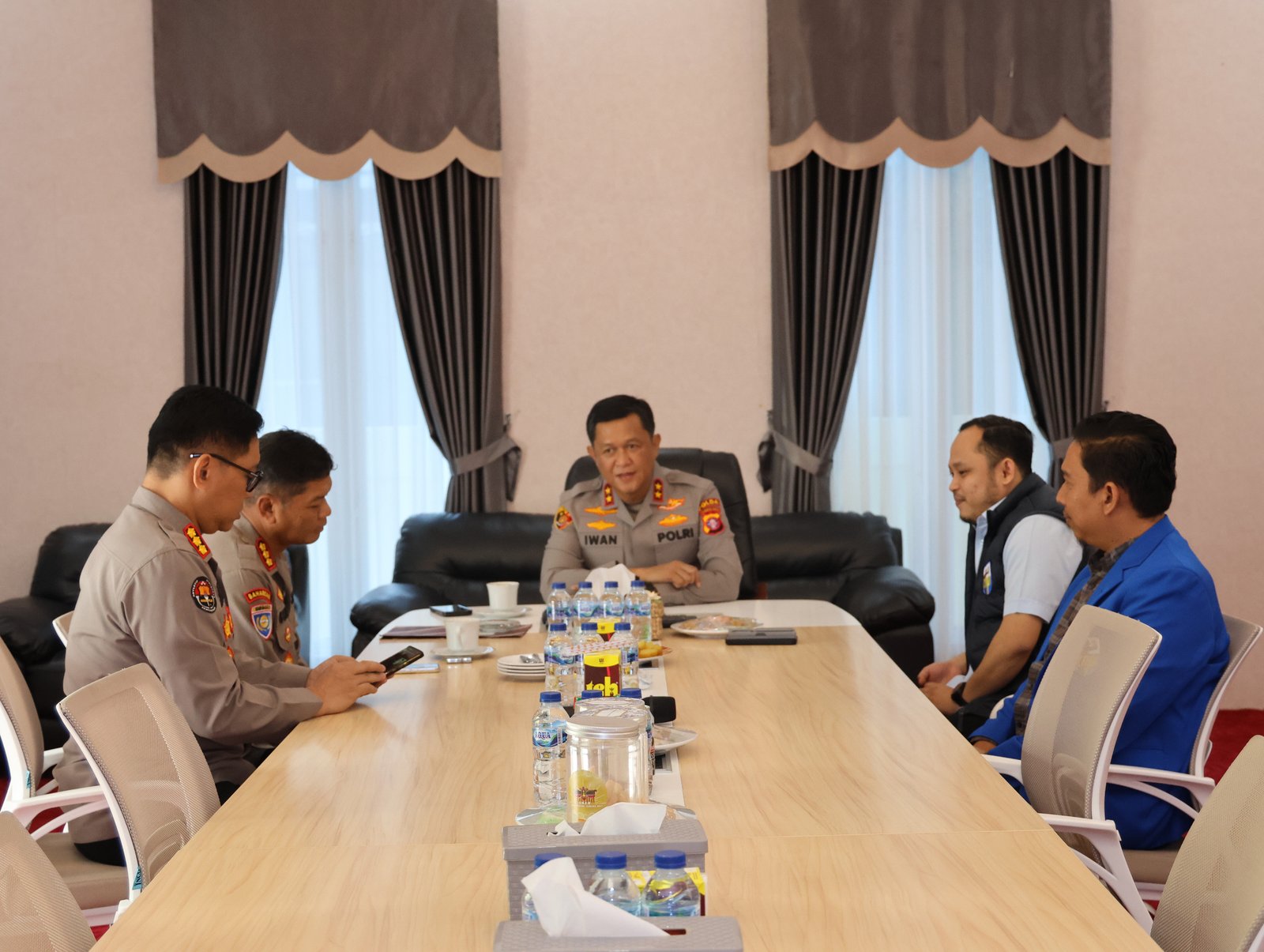 Kapolda Kalteng menyampaikan bahwa audiensi ini digelar dalam rangka memperkuat sinergitas antara Polri dengan KNPI.
