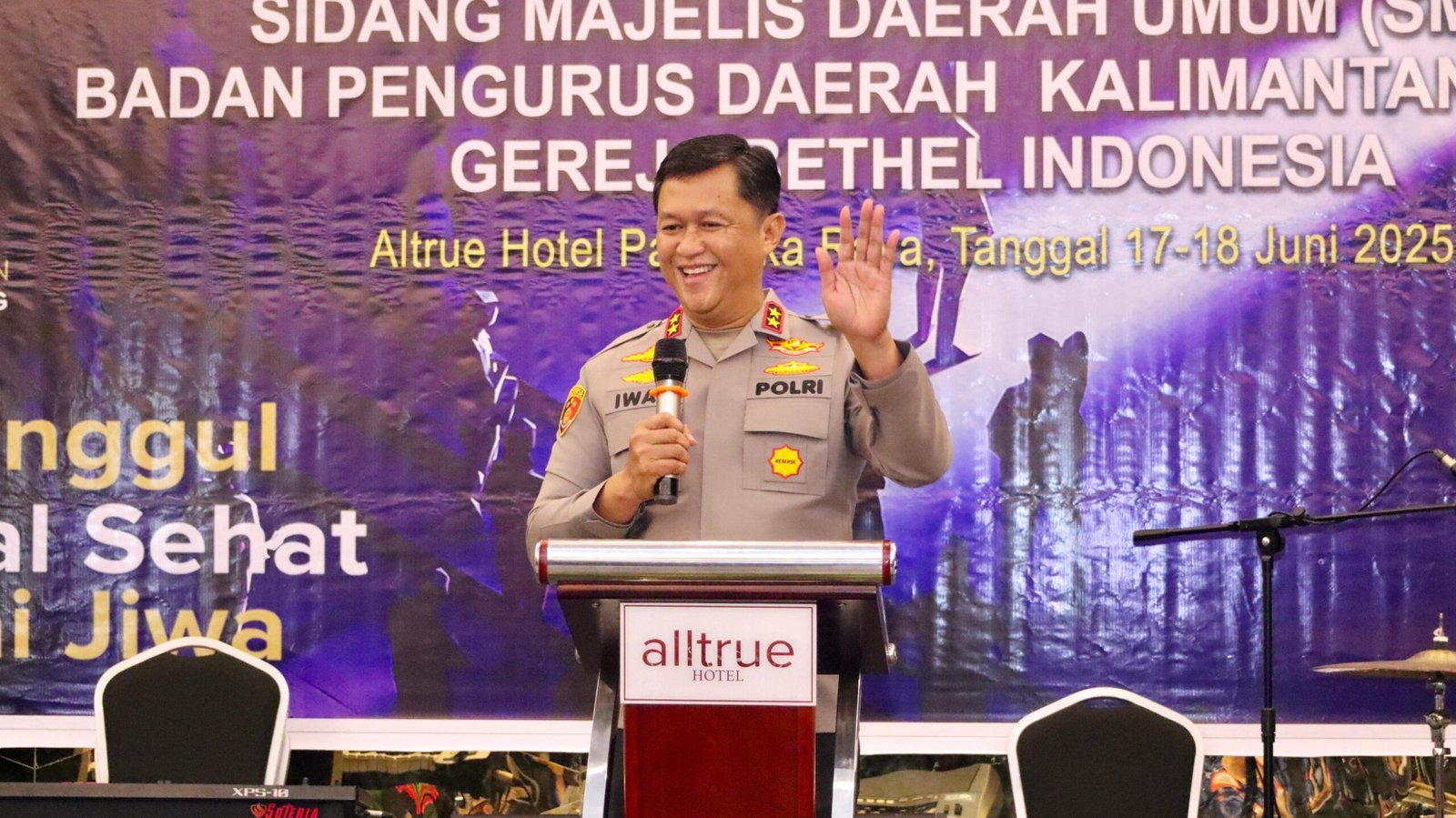 Palangka Raya – Kapolda Kalimantan Tengah (Kalteng) Irjen Pol Iwan Kurniawan menghadiri Sidang Majelis Umum Daerah Gereja Bethel Indonesia (GBI) Wilayah Kalimantan Tengah yang digelar di Hotel Altrue, Kota Palangka Raya, Selasa (17/6/2025).a