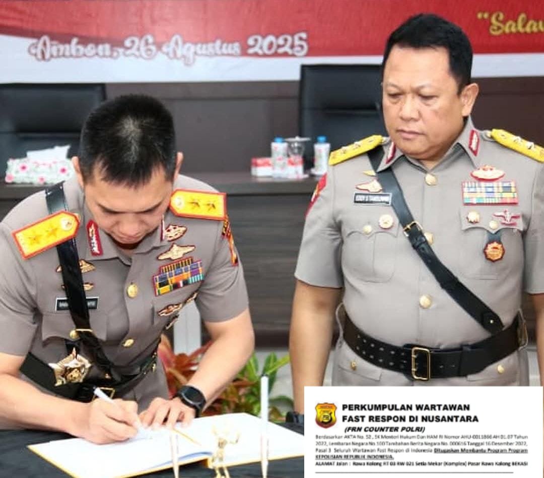 Maluku, – Kapolda Maluku Irjen Pol Prof. Dr. Dadang Hartanto, S.H., S.I.K., M.Si bersama Irjen Pol Drs. Eddy Sumitro Tambunan M.Si menandatangani memori Serah Terima Jabatan yang digelar Biro Perencanaan Polda Maluku di ruang rapat utama lantai 5 Mapolda Maluku, Selasa (26/8/2025).