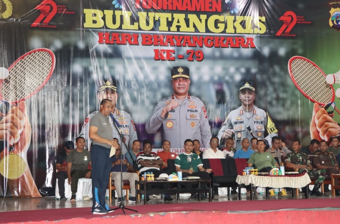 Nabire, – Kapolda Papua Tengah, Brigjen Pol. Alfred Papare, S.I.K., secara resmi membuka Turnamen Bulutangkis dalam rangka semarak Hari Bhayangkara ke-79 Tahun 2025, yang dilaksanakan pada Senin, 7 Juli 2025, di Lapangan GOR Kotalama, Kelurahan Morgo, Kabupaten Nabire, Provinsi Papua Tengah.