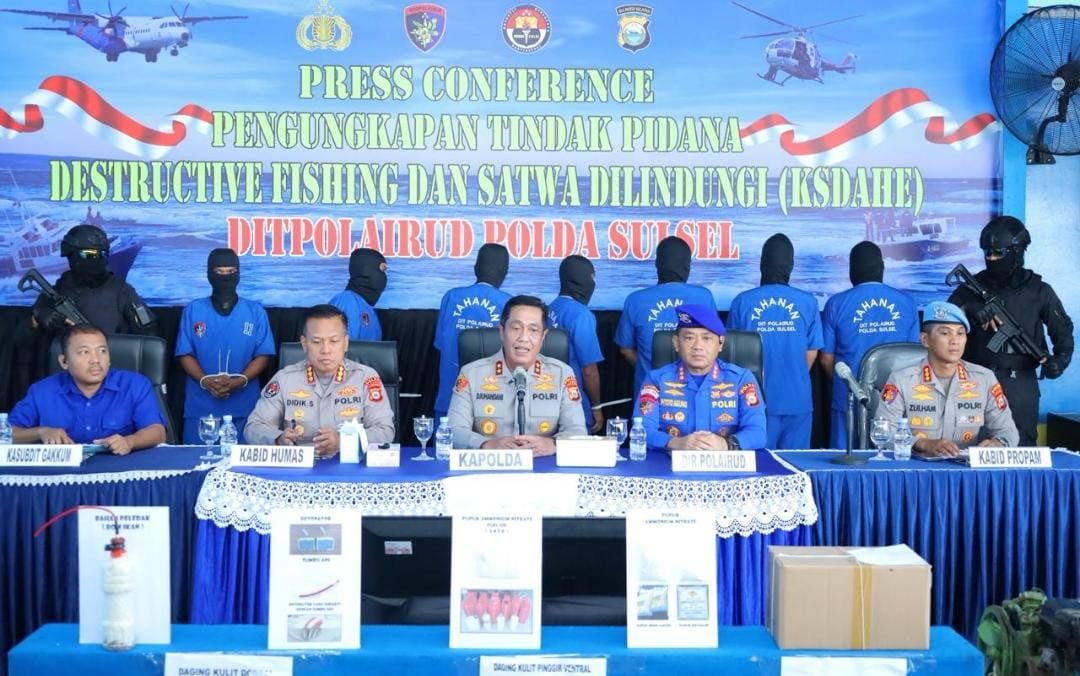 Kapolda Sulsel Pimpin Press Conference Pengungkapan Tindak Pidana Destructive Fishing dan Satwa Dilindungi