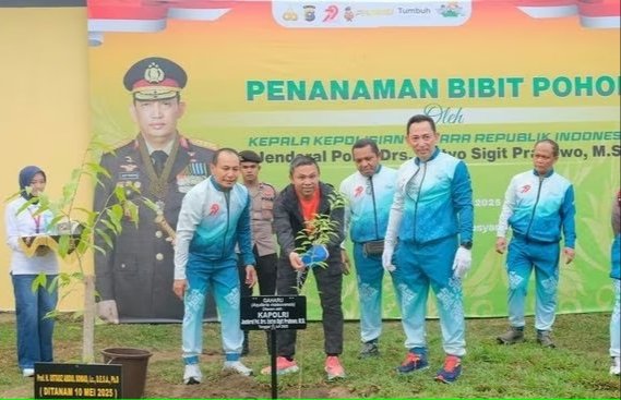 Dalam kegiatan penanaman pohon, Kapolri Jenderal Pol Drs. Listyo Sigit Prabowo M.Si., didampingi Kapolda Riau Irjen Pol Dr. Herry Heryawan S.I.K., M.H., M.Hum., dan Gubernur Riau Abdul Wahid.