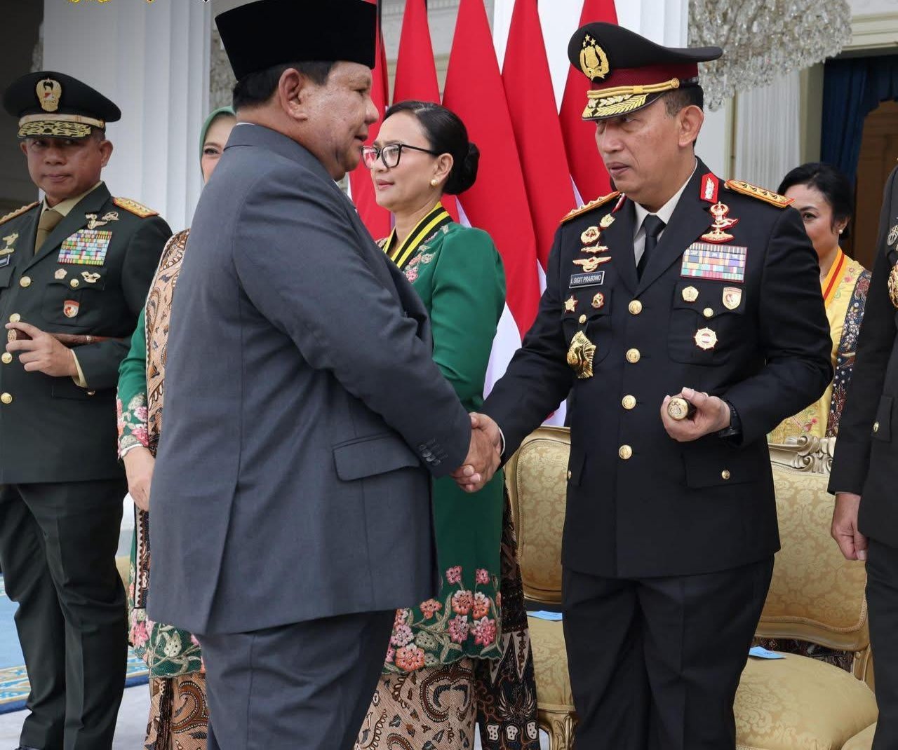 Jakarta, – Kapolri Jenderal Pol Drs. Listyo Sigit Prabowo M.Si., mendampingi Presiden Republik Indonesia Prabowo Subianto dalam Upacara Prasetya Perwira (Praspa) Tentara Nasional Indonesia (TNI) dan Kepolisian Negara Republik Indonesia (Polri) Tahun 2025 yang digelar di halaman Istana Merdeka, Jakarta, Rabu, 23 Juli 2025.