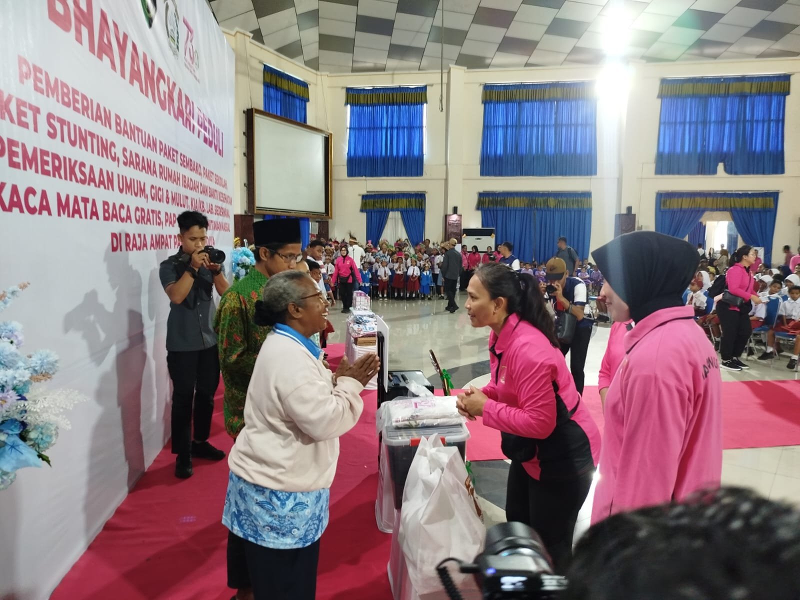 Raja Ampat, – Dalam semangat kepedulian terhadap kesejahteraan masyarakat, Ketua Umum Bhayangkari Ny. Juliati Sigit Prabowo menggelar kegiatan Bantuan Sosial dan Bakti Kesehatan di Gedung Pari Waisai, Kabupaten Raja Ampat. Kamis (19/06/2025) Pagi.