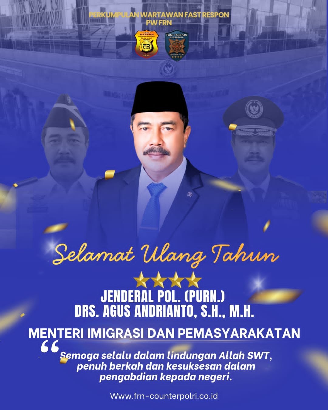 Jakarta – Rasa hormat dan doa terbaik disampaikan Ketua Umum PW-FRN Counter Polri, Agus Flores, kepada Jenderal Pol. (Purn.) Drs. Agus Andrianto, S.H., M.H., yang kini menjabat sebagai Menteri Imigrasi dan Pemasyarakatan, dalam momentum ulang tahunnya yang ke-59 pada 16 Februari 2026.