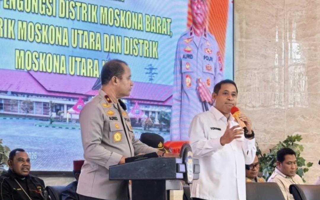 Teluk Bintuni, – Kapolda Papua Barat, Brigjen Pol. Alfred Papare, S.I.K., bersama sejumlah jajaran Pejabat Utama (PJU) melakukan kunjungan kerja ke Mapolres Teluk Bintuni pada Jumat (20/2/2026). Dalam kunjungan tersebut, Kapolda menegaskan komitmen Polri dalam menjamin keamanan warga distrik di wilayah Moskona yang sempat mengungsi akibat konflik keamanan.