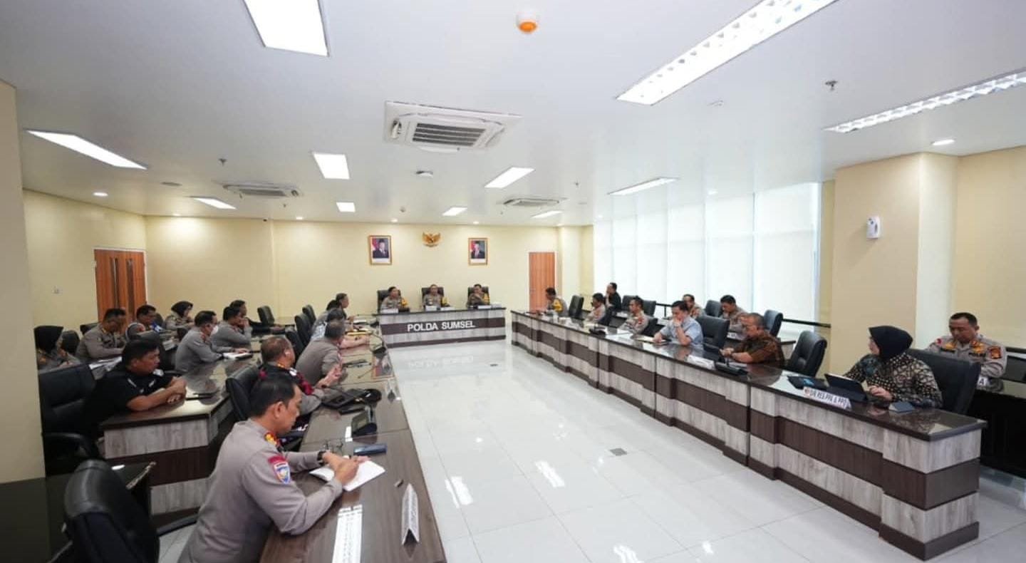 Palembang, – Kapolda Sumatera Selatan, Irjen Pol. Dr. Sandi Nugroho, S.I.K., S.H., M.Hum., memimpin rapat pemantapan Program Asta Cita Presiden RI di Ruang Vicon, Gedung Presisi Polda Sumsel, Jumat (20/2/2026). Selain penguatan program strategis nasional, rapat ini juga membahas kesiapan Apel Ojol Kamtibmas dan agenda kolaborasi bersama serikat buruh.