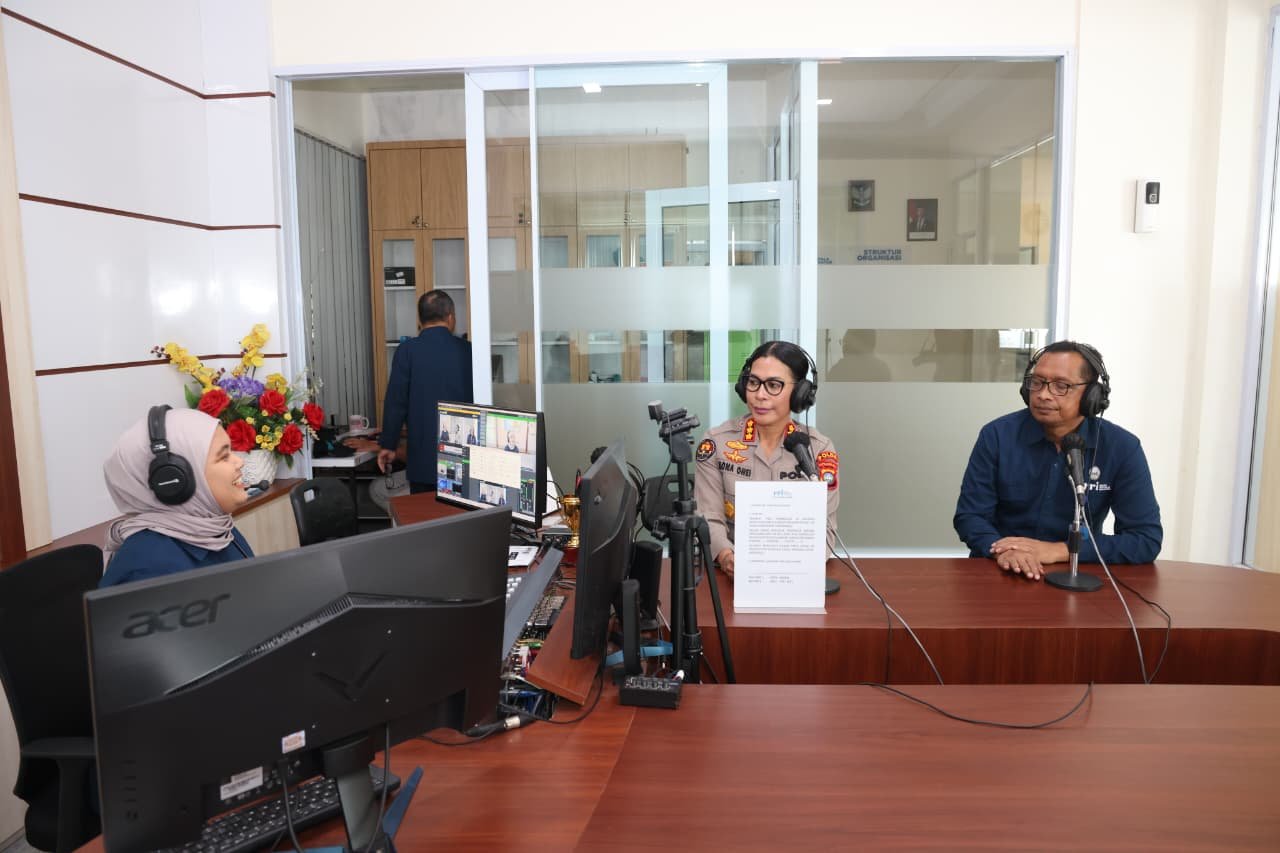 Batam — Kabid Humas Polda Kepri Kombes. Pol. Dr. Nona Pricillia Ohei, S.I.K., S.H., M.H., melaksanakan silaturahmi sekaligus siaran dialog interaktif di Pro 1 Radio Republik Indonesia (RRI) Batam, yang disambut oleh PLT kepala stasiun RRI Bpk. Sutarno, SAP, MA. Batam dan penyiar RRI pada Selasa (13/1/2026).