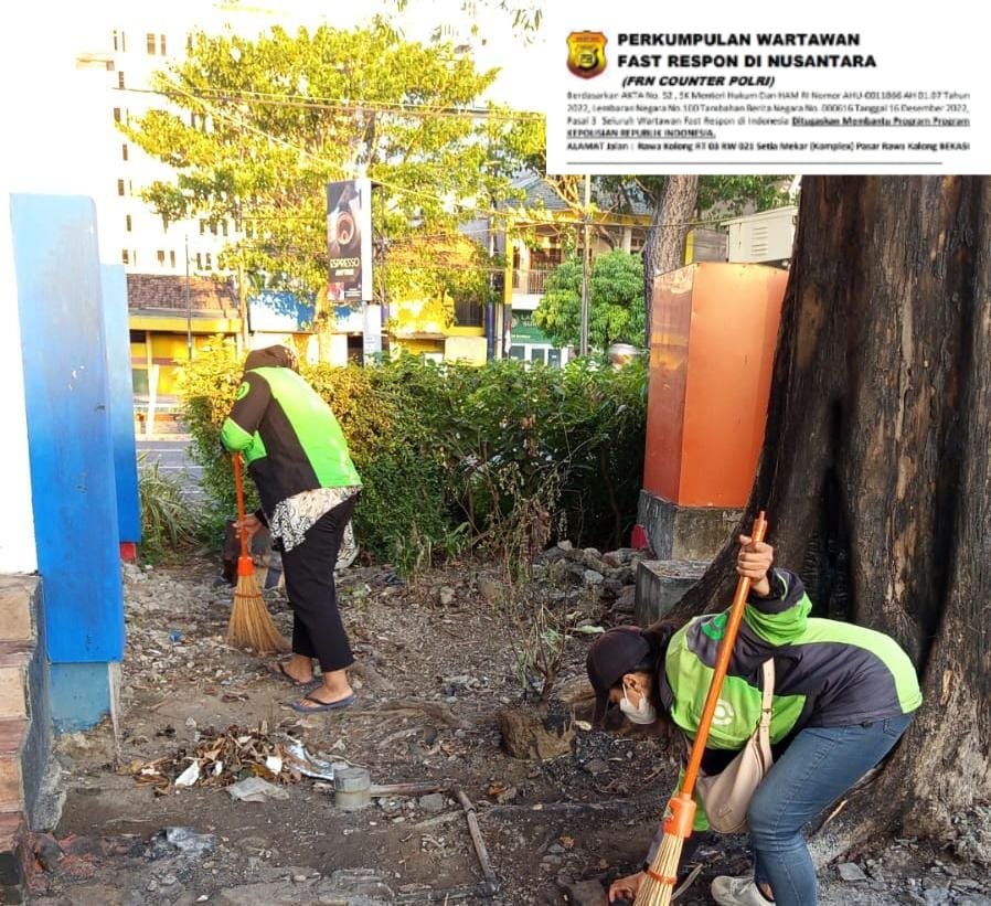 Mereka bekerja dengan semangat gotong royong untuk memulihkan kondisi kota Surabaya.