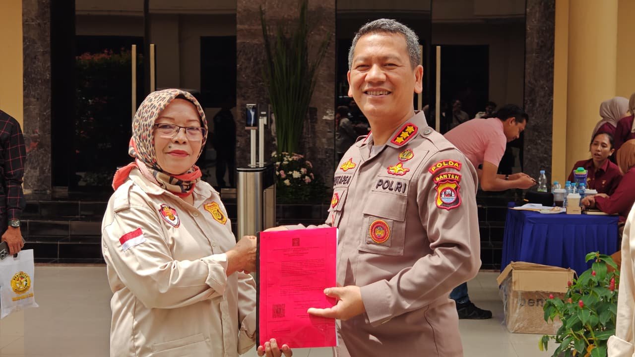 Dalam kesempatan yang sama, Ketua PW FRN DPW Banten Roslina, didampingi Ketua DPC Cilegon Icha S, menyerahkan satu bundel dokumen lengkap Anggaran Dasar dan Anggaran Rumah Tangga (AD/ART) PW FRN kepada Kabidhumas Polda Banten Kombes Pol Maruli Achiles Hutapea.