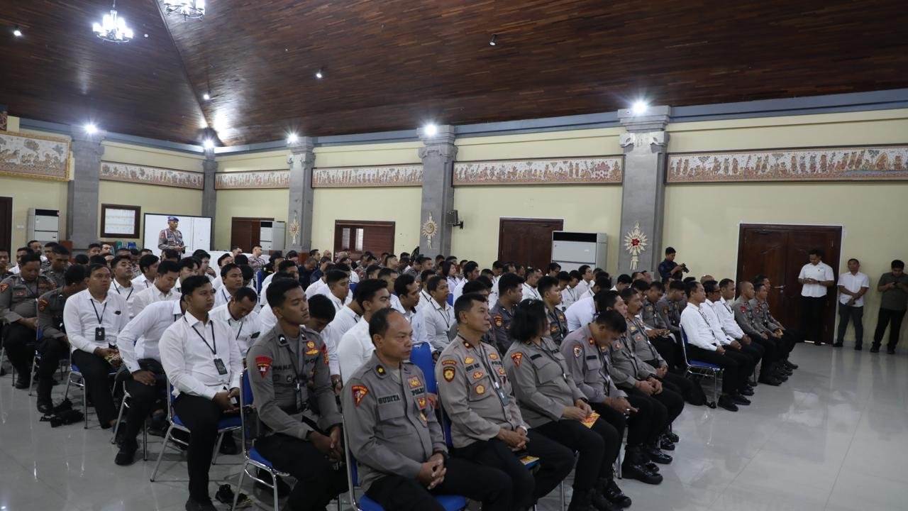 Bali, – Karo Ops Polda Bali Kombes Pol. Soelistijono, S.I.K.,M.H., didampingi Dirreskrimum Polda Bali Kombes Pol. Dr. I Gede Adhi Mulyawarman, S.I.K., S.H.,M.H., membuka Latihan Pra Operasi Sikat Agung 2025 di Gedung Presisi Polda Bali, pada Senin (28/07/2025).
