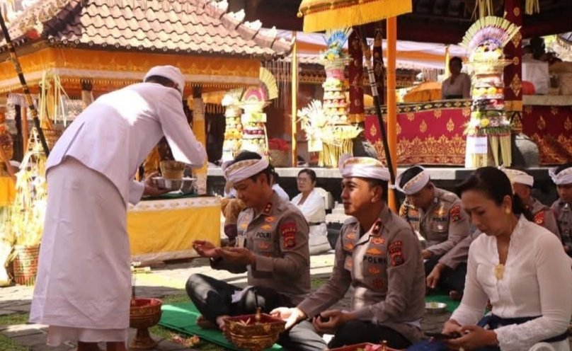 Polda Bali Gelar Piodalan di Pura Linggarcana Polda Bali, Wujud Rasa Syukur dan Harapan