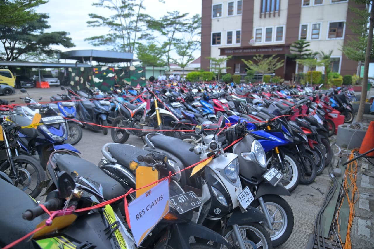 Selain mengamankan para pelaku, polisi juga menyita ribuan barang bukti. Di antaranya 1.122 unit kendaraan roda dua, 7 unit kendaraan roda empat, 4 unit kendaraan roda enam, 2 pucuk senjata api, 21 senjata tajam, 87 unit handphone, uang tunai sebesar Rp 25.770.000, serta 872 barang bukti lainnya.