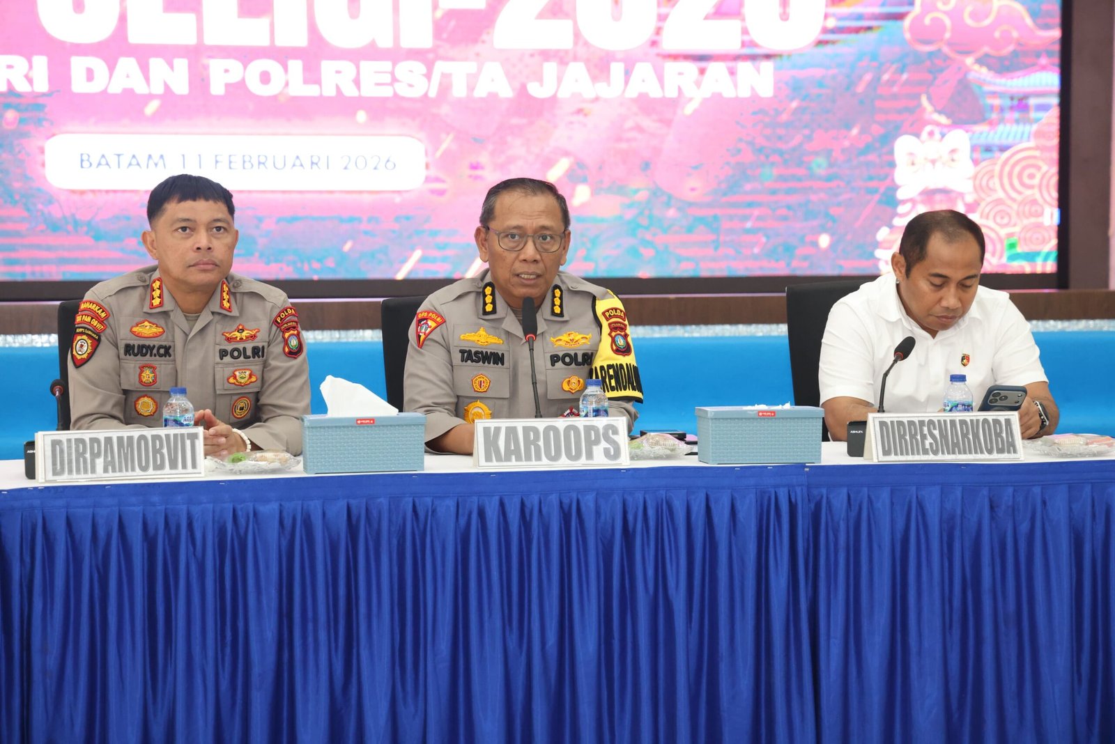 “Karoops Polda Kepri, menegaskan bahwa momentum perayaan Imlek dan meningkatnya aktivitas masyarakat menjelang Ramadhan berpotensi menimbulkan kerawanan gangguan kamtibmas, seperti tindak pidana narkoba, curanmor, maupun kejahatan konvensional lainnya. Oleh karena itu, pelaksanaan operasi mengedepankan langkah-langkah preemtif dan preventif yang didukung penegakan hukum secara tegas dan terukur guna menjaga stabilitas keamanan dan ketertiban masyarakat,ujar Karoops Polda Kepri