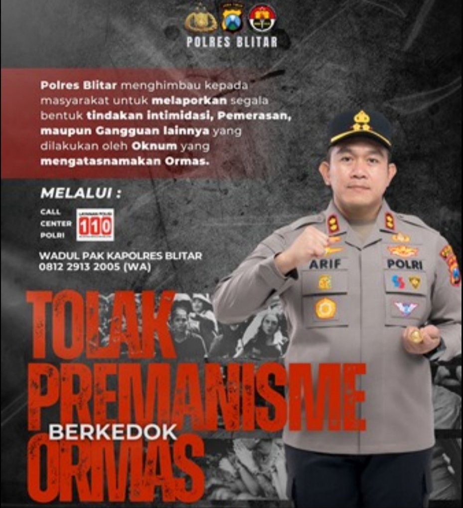 Polres Blitar mengajak seluruh elemen masyarakat untuk mendukung pelaksanaan operasi ini dengan cara melaporkan setiap aktivitas mencurigakan yang mengarah pada aksi premanisme.