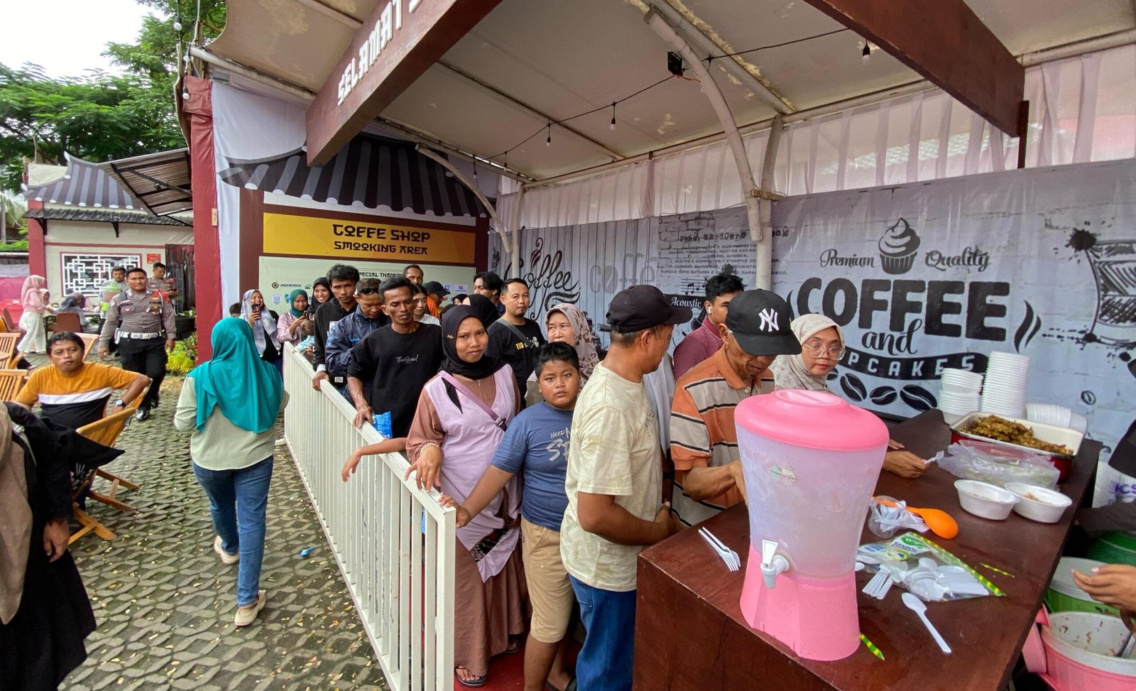 Setiap pemudik yang singgah di pos ini tak hanya menikmati fasilitas kesehatan, kursi pijat, dan area bermain anak secara gratis, tetapi juga mendapatkan makanan dan minuman gratis yang disediakan langsung oleh petugas.