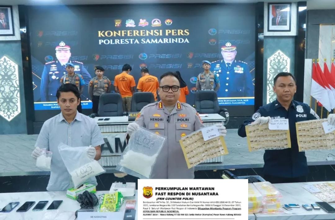Konferensi pers dipimpin langsung oleh Kapolresta Samarinda Kombes Pol Hendri Umar, S.I.K., M.H., didampingi oleh Kasat Resnarkoba Kompol Bangkit Dananjaya, S.I.K., M.A., serta Kasi Humas Polresta Samarinda Ipda Novi Hari Setyawan, S.H., M.H. Kegiatan ini turut dihadiri oleh 24 awak media dari berbagai platform cetak dan daring.