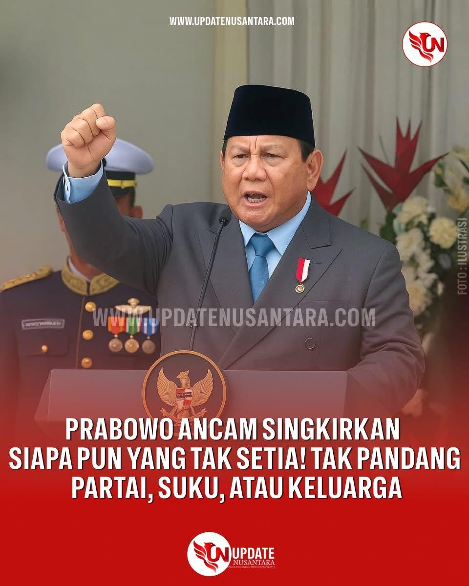 Jakarta, – Presiden RI Prabowo Subianto menegaskan akan mengambil tindakan tegas terhadap siapa pun yang tidak menunjukkan kesetiaan kepada Negara Kesatuan Republik Indonesia. Pernyataan itu ia sampaikan dalam sambutannya pada upacara peringatan Hari Lahir Pancasila yang digelar di Gedung Pancasila, Jakarta, Senin (2/6/2025).