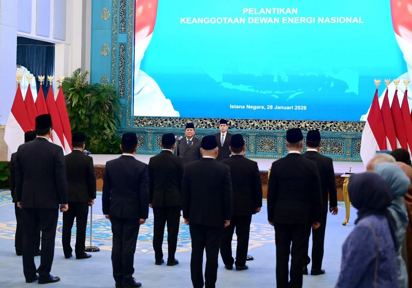Jakarta, – Presiden Republik Indonesia Prabowo Subianto melantik keanggotaan Dewan Energi Nasional di Istana Negara, Jakarta, Rabu, 28 Januari 2026. Pelantikan tersebut mencakup keanggotaan Dewan Energi Nasional dari unsur pemerintah dan pemangku kepentingan.