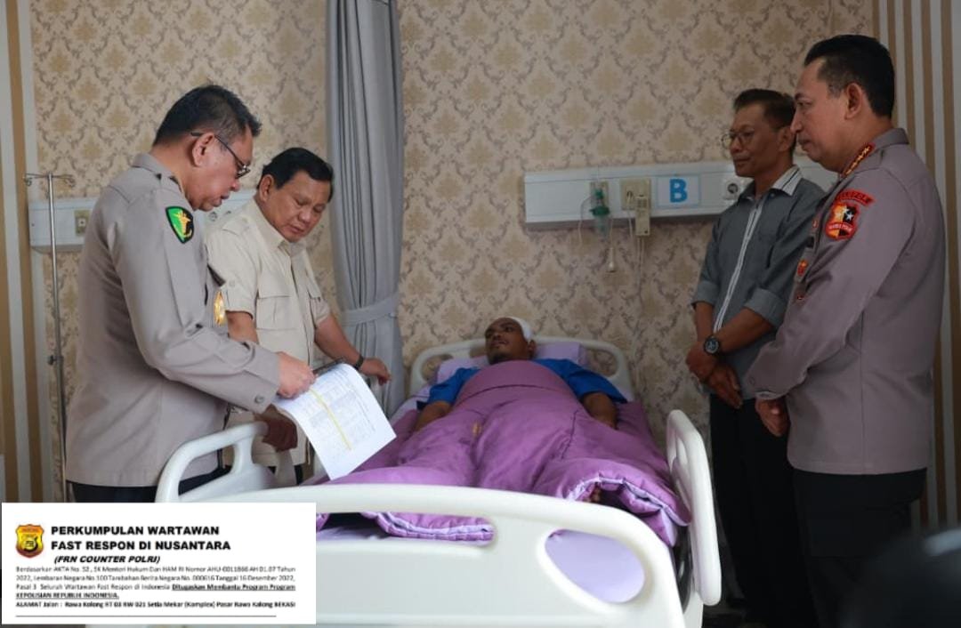 Jakarta, – Presiden Prabowo Subianto menjenguk masyarakat dan polisi menjadi korban aksi demonstrasi yang tengah menjalani perawatan di Rumah Sakit Umum Bhayangkara Tingkat 1 R. Said Sukanto Kramat Jati, Jakarta Timur, pada Senin, 1 September 2025.