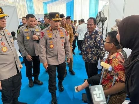 Lampung, – Kepala Kepolisian Republik Indonesia Jenderal Pol Drs. Listyo Sigit Prabowo M.Si., menghadiri kegiatan bakti kesehatan yang digelar Polda Lampung. Total ada 1.200 warga yang mengikuti pemeriksaan kesehatan gratis. Kegiatan tersebut digelar di Mapolda Lampung, Senin (28/7/2025).