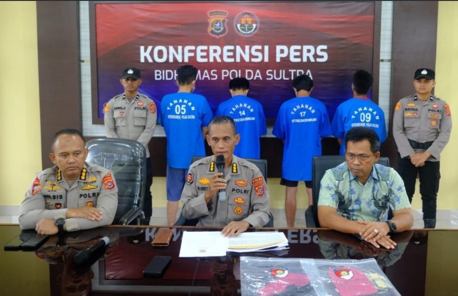 Kabid Humas Polda Sultra, Kombes. Pol. Iis Kristian, didampingi Karo Ops Polda Sultra, Kombes. Pol. Wasis Santoso, S.I.K, dan Dir Krimum, Kombes. Pol. Dody Ruyatman, S.I.K., memaparkan hasil operasi yang berfokus pada pemberantasan premanisme serta penindakan terhadap praktik ilegal seperti minuman keras, narkoba, perjudian, dan prostitusi.