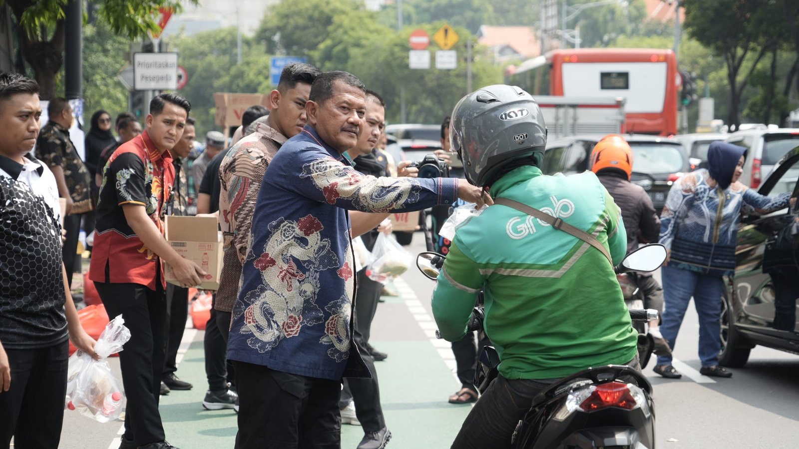 Sebanyak 500 paket makan siang lengkap dengan air mineral dibagikan secara langsung kepada masyarakat yang melintas di depan kantor Ditjenpas. Antusiasme terlihat selama jalannya pembagian yang menunjukkan sambutan positif dari masyarakat.